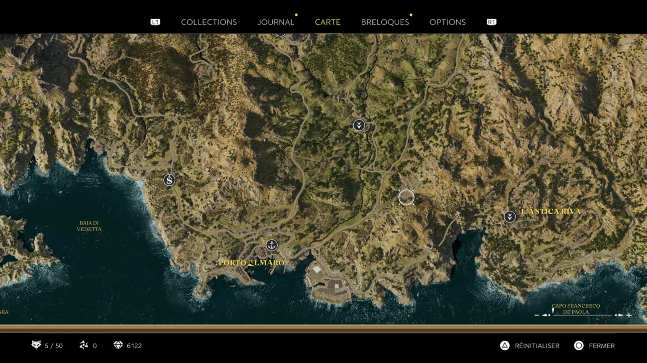 Parfois au cours de vos pérégrinations, vous croiserez quelques collectibles à ramasser, comme des journaux ou des breloques pour votre chapelet. Il existe également des spots spécifiques pour prendre des photographies ou bien des Tricatas, objets cultuels représentant Méduse et échangeables contre des dinars, constituant la monnaie du jeu (la lire est évoquée mais ne sera pas cumulable par le joueur, assez étrange). Vous pourriez même tomber sur d’étranges renards empaillés…